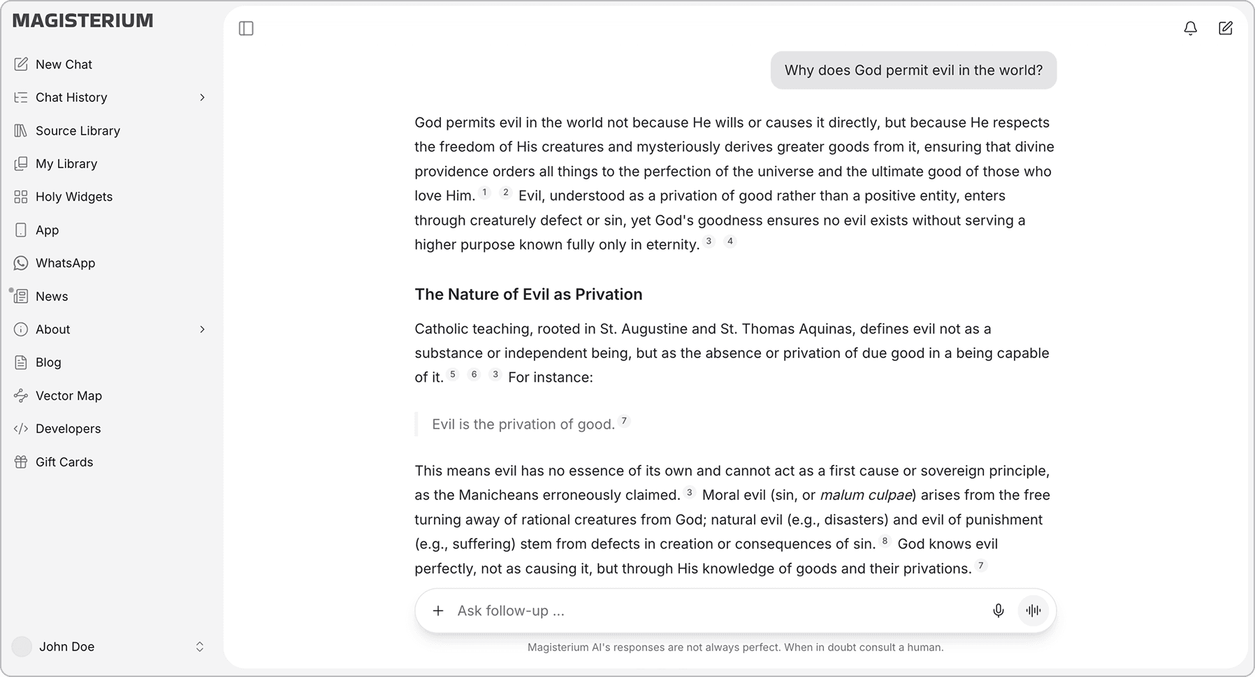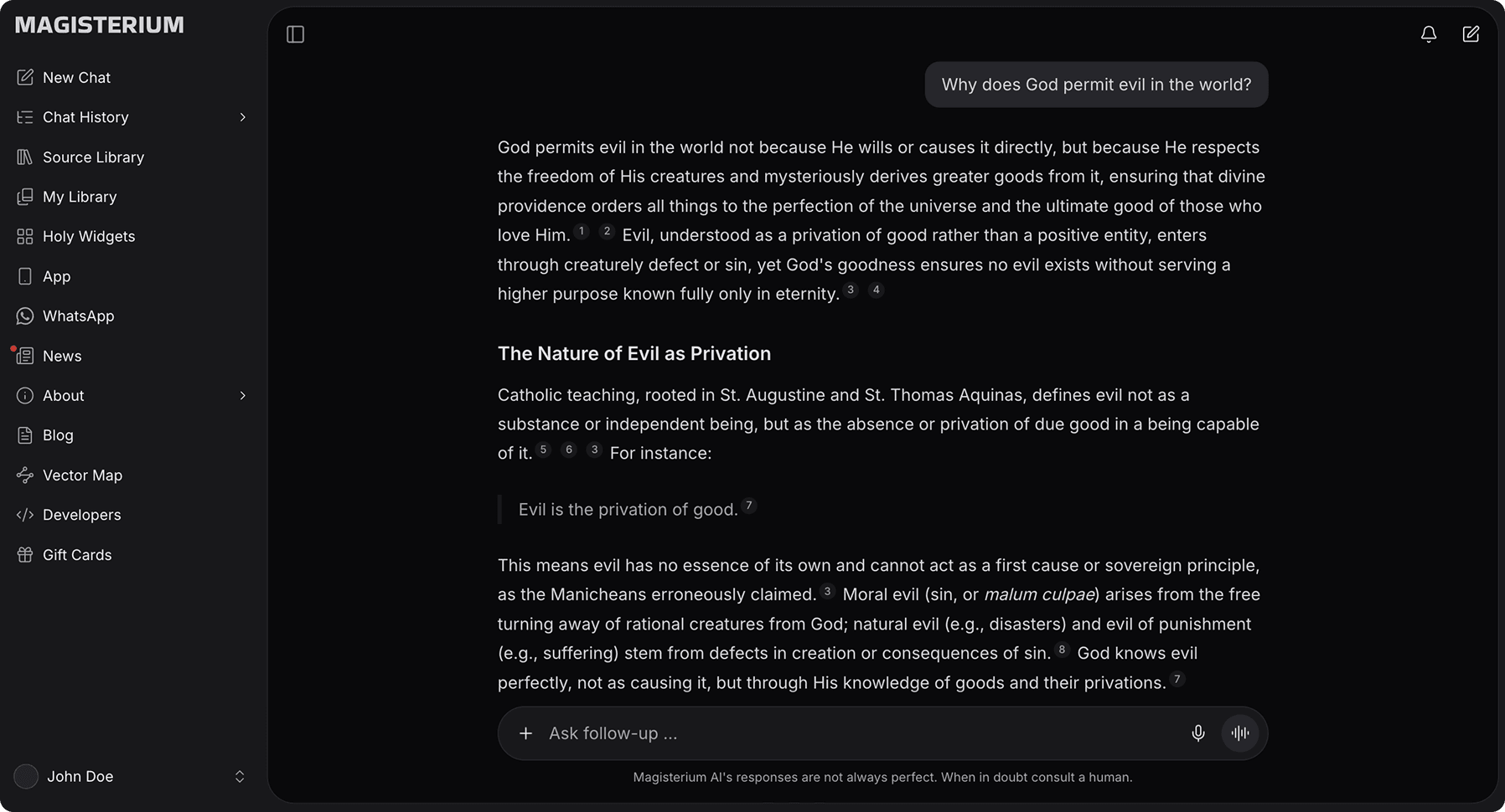Magisterium AI vishvachi mukhel Catholic AI. Moffat ani sokoil vapurunk, Catholic paramparant mulam instant uttram ditat. Atan sign up kor ani prasna vichor.