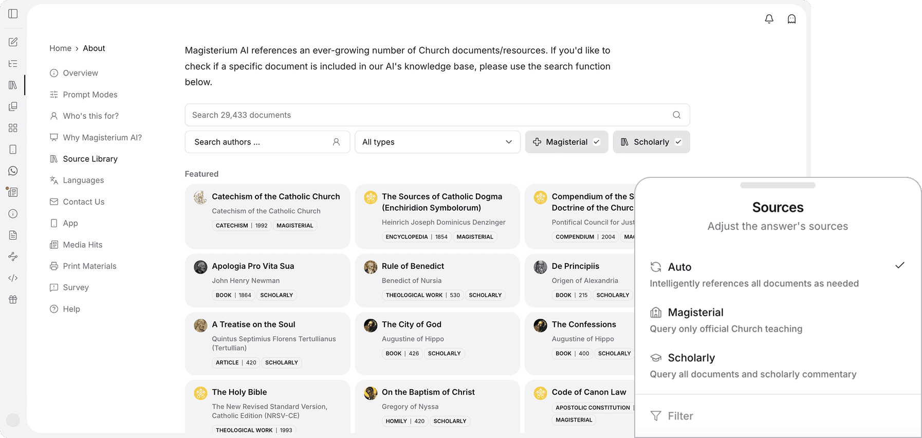 Amchea vishvasti nollachi baza hanchea sathe app vã website chalov. Satyechea adharar Magisterium AI lagu kor.